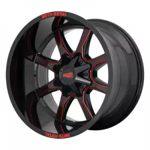 Moto Metal Wheels MO970 Gloss Black with Milled Red Tint and Moto Metal on Lip MO970210863C18N